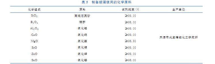 表5 制备玻璃使用的化学原料