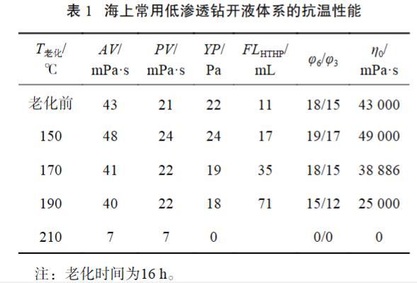 1.2海上常用高温低渗透钻开液体系的抗温性