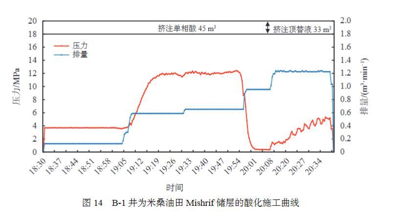 图14 B-1井为米桑油田Mishrif储层的酸化施工曲线
