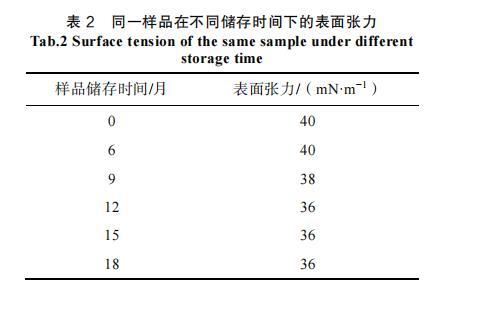 表2同一样品在不同储存时间下的表面张力