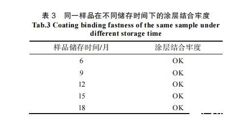 表3同一样品在不同储存时间下的涂层结合牢度