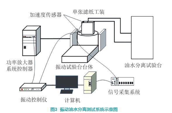 试验的主要设备有电振动试验台、按照ISO 16332标准搭建的柴油–水分离试验台、加速度传感器及信号采集系统、电子天平、库伦法微量水测定仪、界面张力仪、黏度计等。