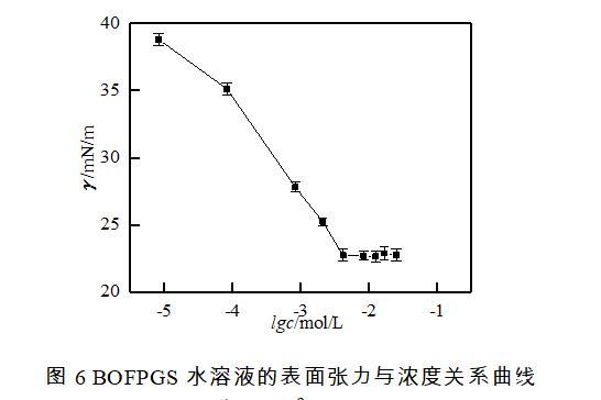 图6 BOFPGS水溶液的表面张力与浓度关系曲线