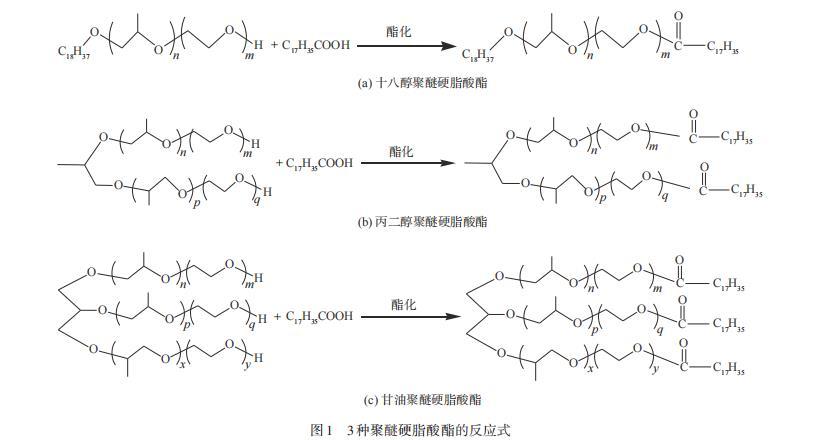 图1 3种聚醚硬脂酸酯的反应式