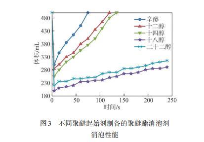 2.1脂肪酸碳链长度对聚醚酯消泡剂消泡性能的影响