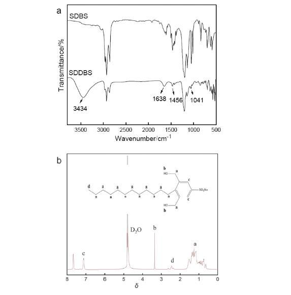图2(a)SDDBS红外光谱图和(b)核磁共振氢谱