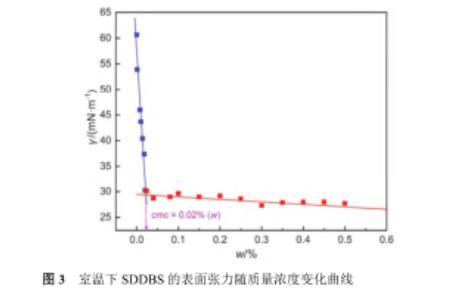 图3室温下SDDBS的表面张力随质量浓度变化曲线