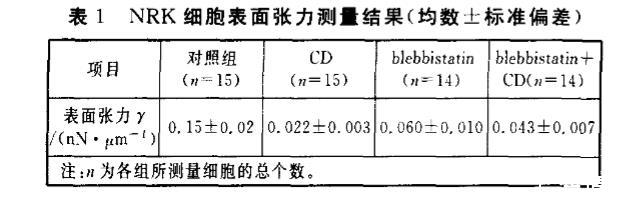 2.1不同细胞骨架蛋白抑制剂对细胞表面张力影响的比较