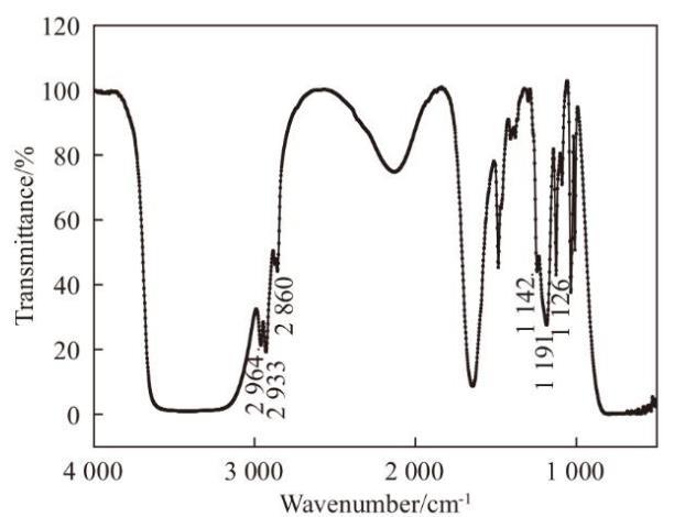 图2为DL-5红外光谱图,由图中可以看出,1 126和1 190 cm-1处是磺酸基的特征吸收峰;2 964,2 933,2 860 cm-1为-CH3与-CH2的特征吸收峰;1 242 cm-1为二苯醚醚键的特征吸收峰,说明产物为烷基二苯醚/烷基苯混合磺酸盐。