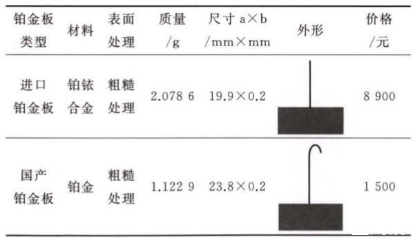 表1原配进口铂金板和BZY-1原配国产铂金板比较