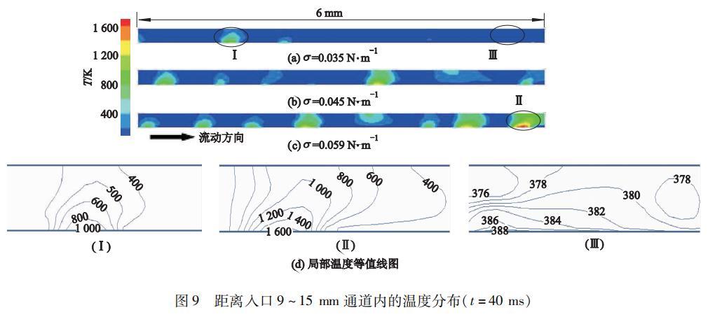 图9距离入口9~15mm通道内的温度分布(t=40 ms)