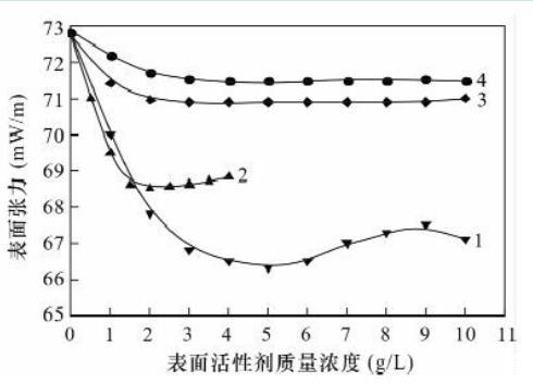 2.2表面活性剂不同浓度对水溶液表面张力的影响