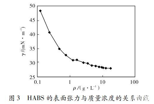 图3 HABS的表面张力与质量浓度的关系曲线