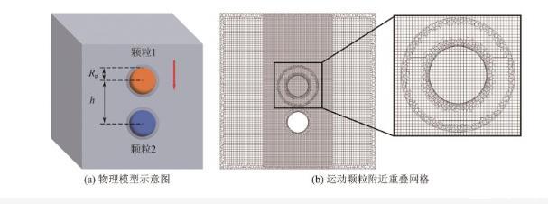 图2 物理模型示意图与运动颗粒附近重叠网格