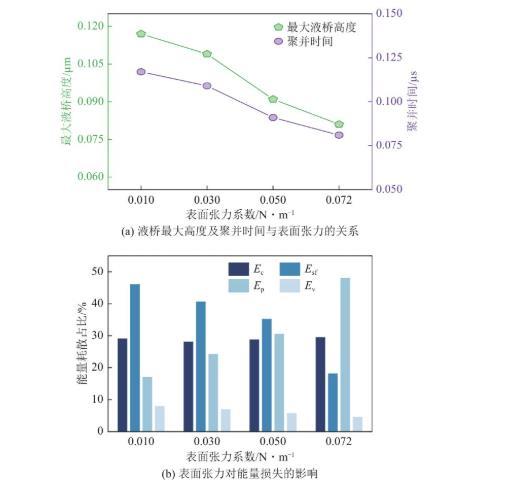 图6 液桥行为特性及表面张力对能量损失的影响分析