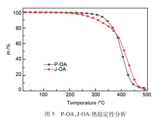 图5 P-OA 和 J-OA 的热稳定性