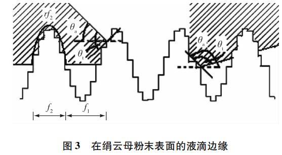 图 3 液体在粗糙绢云母粉末表面接触模型