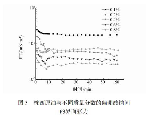 2.2 偏硼酸钠/桩西原油体系的界面张力研究