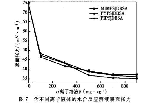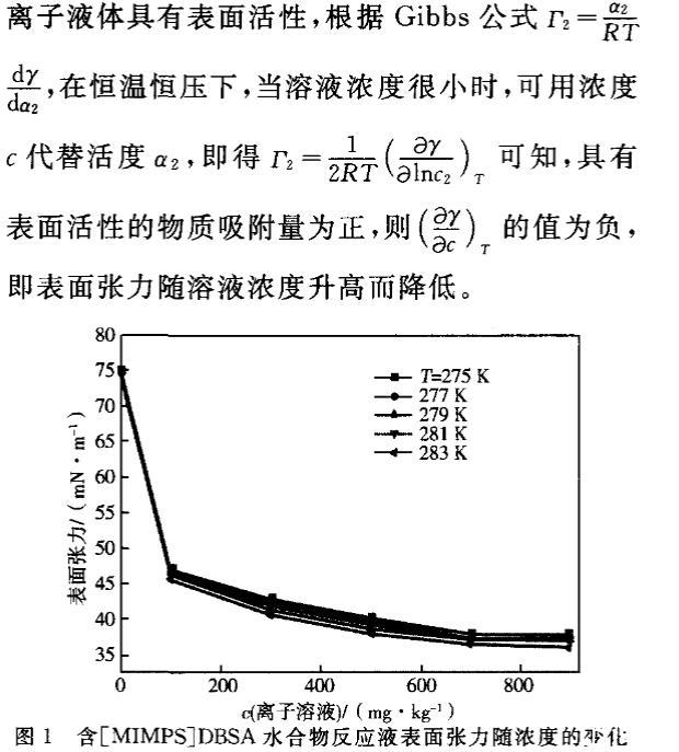 2.1 [MIMPS]DBSA对水合物反应液表面张力的影响