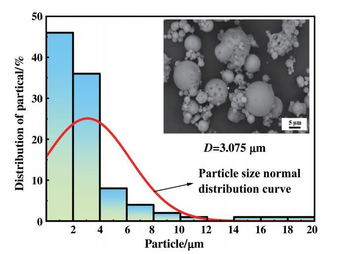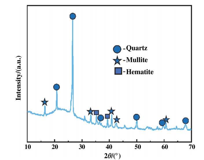 试验所用原料与试剂如下:粉煤灰,产自内蒙古某燃煤电厂。粉煤灰的形貌及粒径分布如图1所示,可看到粉煤灰的结构中含有表面光滑、颗粒大小不一的球形微珠,其粒度在0~20 μm之间。粉煤灰的化学成分及其含量如表1所示,其氧化物以SiO2和Al2O3为主。粉煤灰的XRD谱如图2所示,粉煤灰中的主要结晶物质有石英(Quartz, SiO2)、莫来石(Mullite, Al5SiO9.5)和赤铁矿(Hematite, Fe2O3),15~34°存在的弥散峰对应于具有碱激发活性的玻璃体。H2O2溶液,浓度为30%,购自沈阳新化化学品有限公司;氢氧化钾(KOH),分析纯,购自天津瑞金特化学品有限公司;硅酸钾粉末,工业级,模数为2.85,购自山东优索化工科技有限公司。表面活性剂 Meap-k 和 SDS 购自青岛优索化学科技有限公司,CTAB购自上海麦克林生化科技有限公司,Tween-80 和 APG 分别购自上海麦克林生化科技有限公司和山东优索化工科技有限公司。